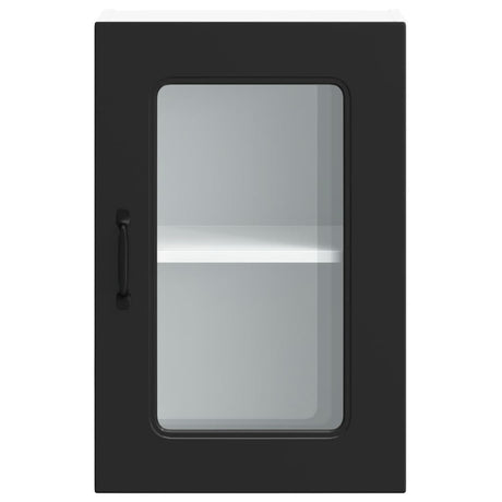 Kitchen Wall Cabinet with Glass Door "Kalmar" Black Engineered Wood