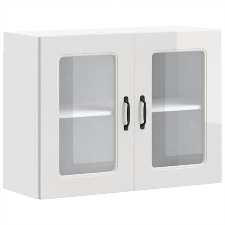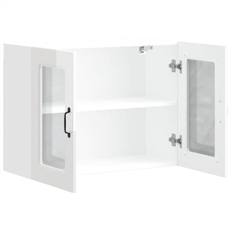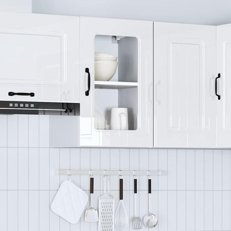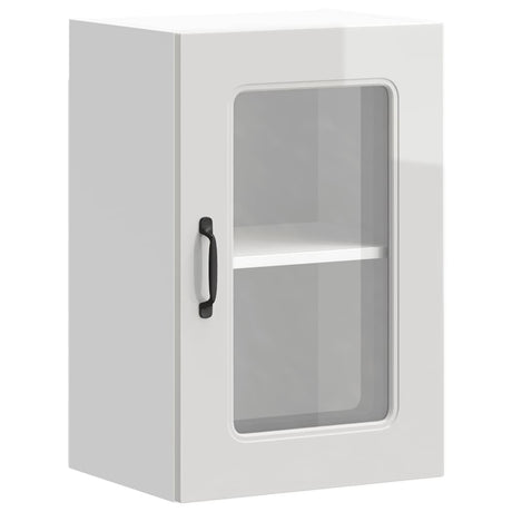 Kitchen Wall Cabinet with Glass Door "Kalmar" High Gloss White Engineered Wood