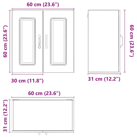 Kitchen Wall Cabinet with Glass Door "Kalmar" High Gloss White Engineered Wood