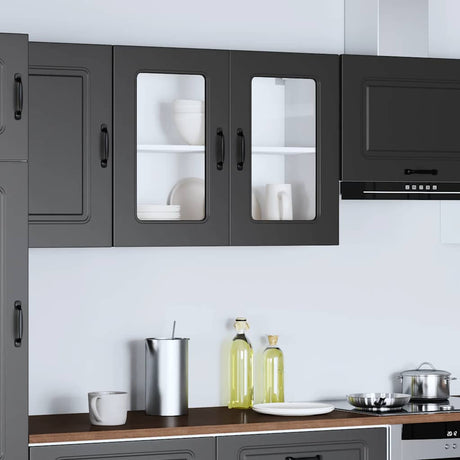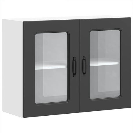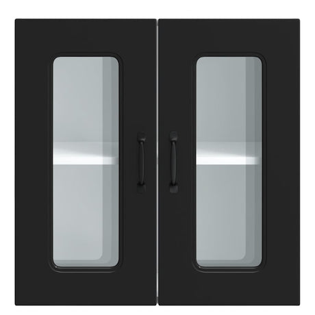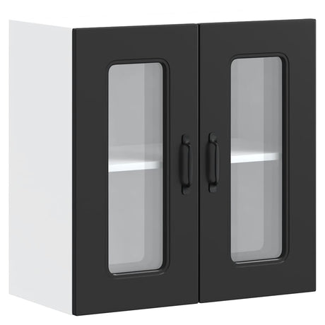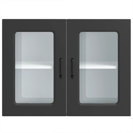 Kitchen Wall Cabinet with Glass Door "Kalmar" Black Engineered Wood
