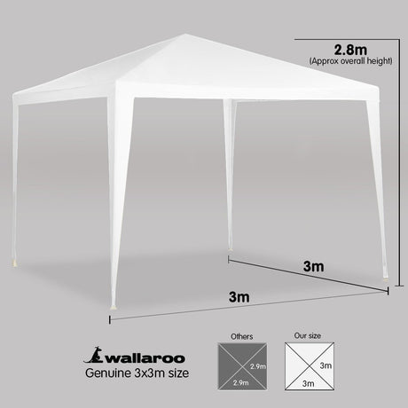 3x3m Wallaroo Outdoor Party Wedding Event Gazebo Tent - White