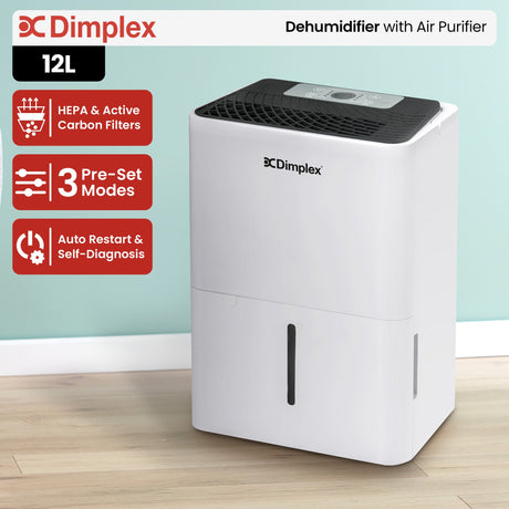 Dimplex Portable 12L Dehumidifier with Air Purifier in Black and White