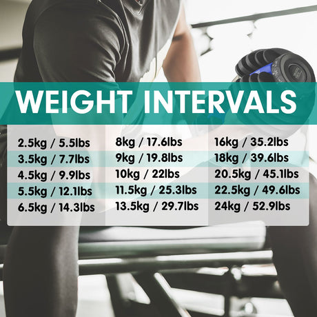 Powertrain 24kg Adjustable Dumbbell Home Gym Exercise Weights Free Workout Blue