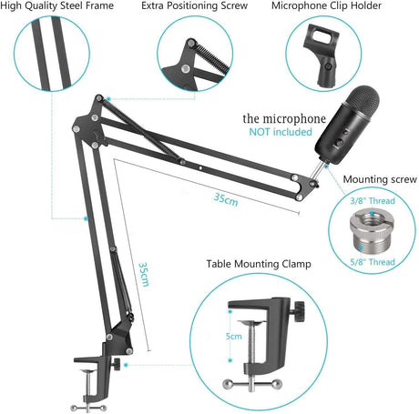 Microphone Radio Broadcasting Stand With 3/8t o 5/8 Screw Adapter