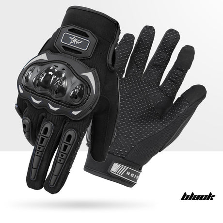Size L Black Protective Motorcycle Riding Gloves - Hard Knuckle Armour & Touchscreen Fingertips