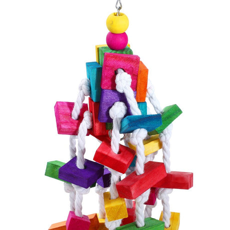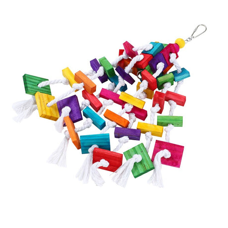 Colorful Parrot Toy with Wooden Beads, Blocks, and Cotton Rope - Chewing and Climbing Fun for Birds