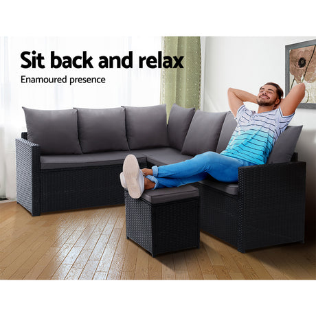 Gardeon Outdoor Dining Set Sofa Lounge Setting Chairs Table Ottoman Black Cover