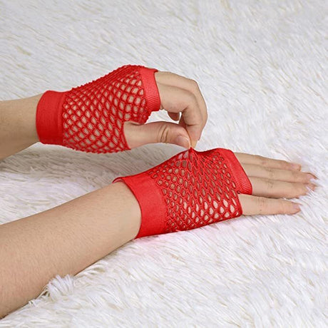 1 Pair Fishnet Gloves Fingerless Wrist Length 70s 80s Costume Party Dance - Red