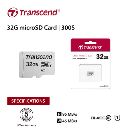 Transcend 32GB UHS-I U1 microSD Card (No Adapter) - Fast Mobile App Storage Solution