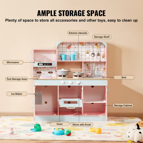 VEVOR Kitchen Playset Kids Pretend Cooking Play Toy 24 Piece Accessories Pink