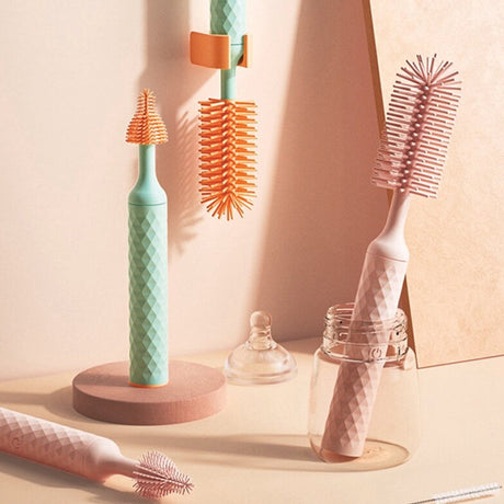 Vibe Geeks 360° Rotation Long Handle Reusable Silicone Baby Bottle Brush Set - Pink