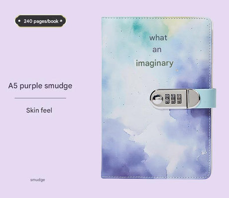 A5 Tie-Dye Journal with Combination Lock - 240 Pages, Soft Touch Cover Diary(Purple)
