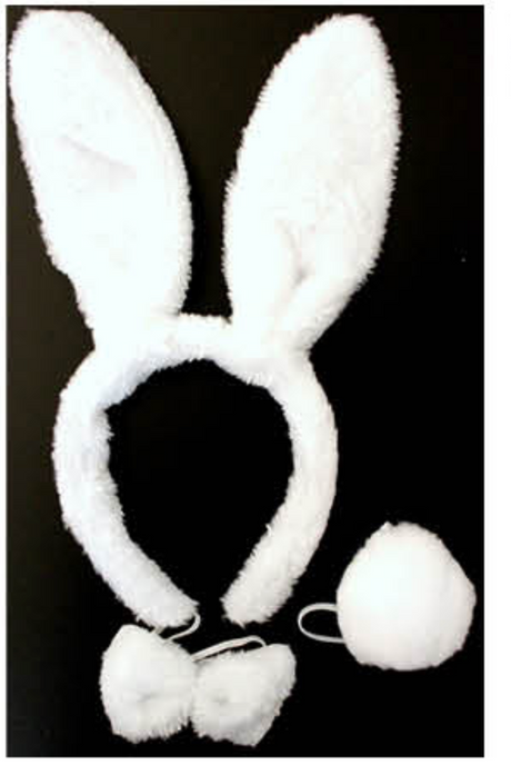 Adorable White Bunny Ear Headband with Bow and Tail for Halloween Costume Party
