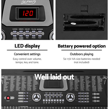 Alpha 61 Keys Electronic Piano Keyboard Digital Electric w/ Stand Beginner Black