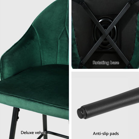 Artiss 4x Bar Stools Velvet Swivel Metal Legs Green