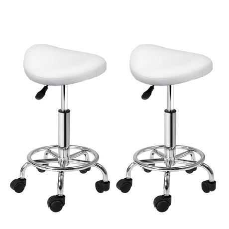 Artiss 2x Salon Stool Saddle Swivel Chair White