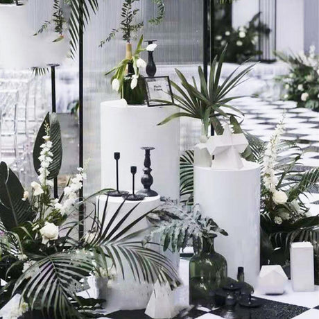3x Metal Wedding Plinths Cylinder Pedestal Stand Ripple Cake Dessert Display