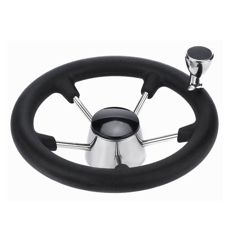 13.5 Polished Stainless Steel Boat Steering Wheel - 5 Spoke with Ergonomic Knob for 3/4 Shaft
