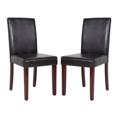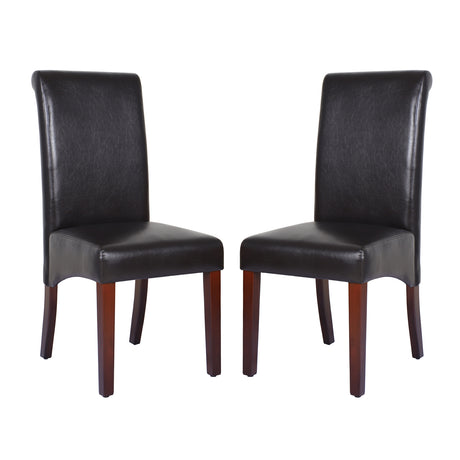 Set of 2 Rome Leather Brown Dining Chairs Durable Seat Wood Kitchen Cafe