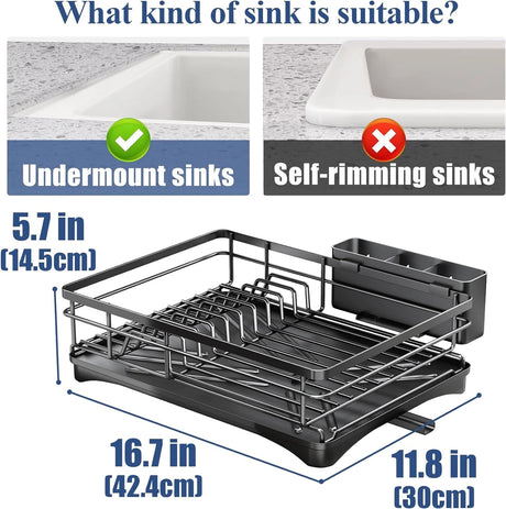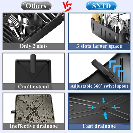 Large Dish Drying Rack with Drainboard Black