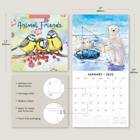 Animal Friends 2025 Square Wall Calendar Animals 16 Months Premium Planner Gift
