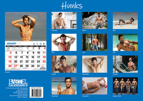 Hunks - 2025 Rectangle Wall Calendar 16 Months Planner Handsome Men Photos Gift