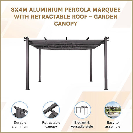 3x4M Aluminium Pergola Marquee with Retractable Roof – Garden Canopy