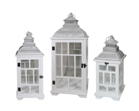 Set 3 White Wooden Lantern w Metal Roof 79cm