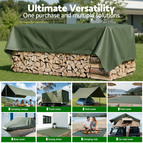 Instahut 4x6m Tarp Tarpaulin 600GSM Camping Canvas Heavy Duty Water Resistant