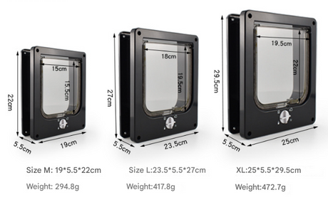 Size XL Black 4-Way Locking Pet Flap Door for Cats and Small Dogs - Weatherproof Magnetic Cat Door