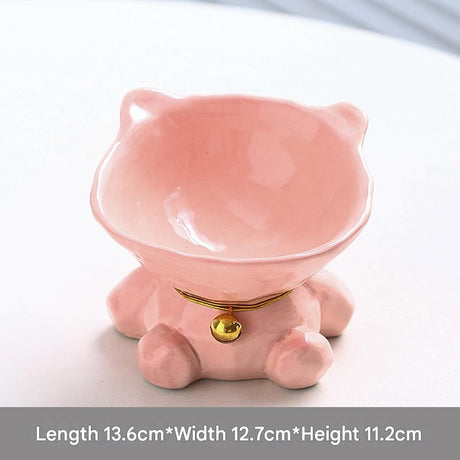 Pink Cute Ceramic Cat Bowl - Pet Feeder for Feeding and Drinking
