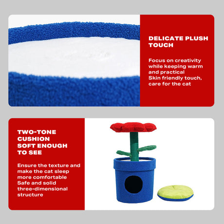 Rich Flower Cat Tree with Scratcher Pole Cat Tower with Hidaway Cat Bed Furbulous Cat Tree