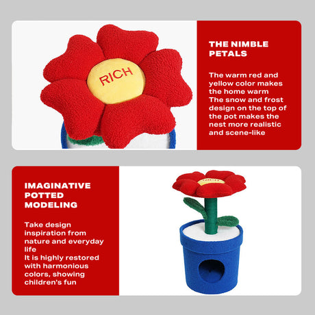 Red and Black Adorable Flower Cat Tree - Plush Perch, Sisal Scratching Post & Spring Ball Toy
