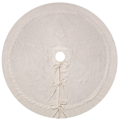White Luxury Knit Christmas Tree Skirt with Cable-Knit Border - Rustic Holiday Decor(122cm)