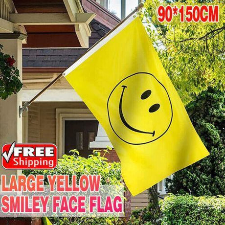 Large Yellow Smiley Face Flag Heavy Duty Outdoor Happy 90 X 150 CM - 3ft x 5ft