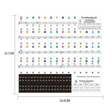 Transparent Keyboard Piano Stickers 88/61/54/49/37 Keys Sticker Note For Learner - Colourful
