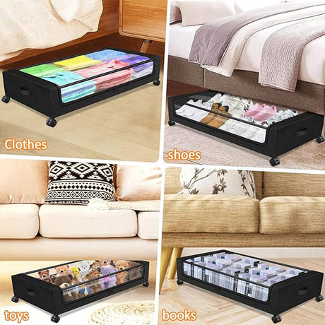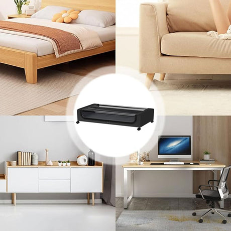 Under Bed Storage Rack Square Design with Wheels Rolling Trolley Box for Home - Black