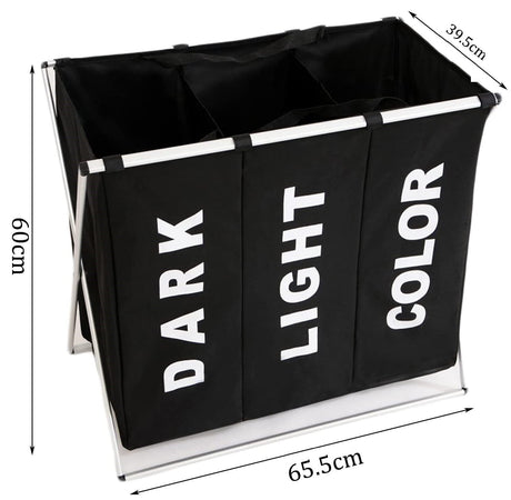 Artiss Laundry Basket Hamper Large Foldable Washing Clothes Storage 3 Sections