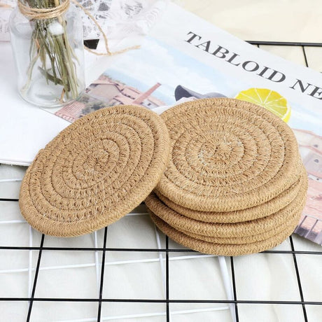 8PCS Round Cotton Woven Coaster Heat Resistant Thick Insulation Dining Table Mat - Brown