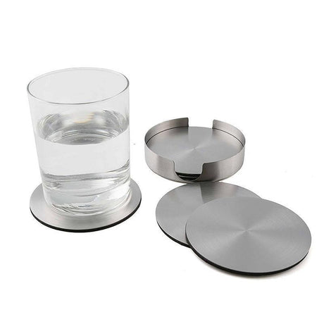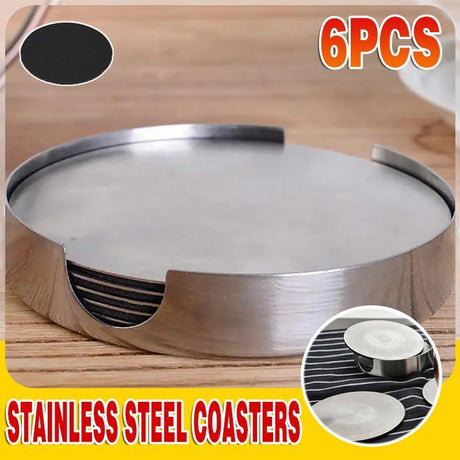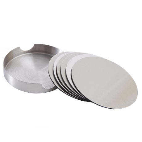 Stainless Steel Drink Coaster Set 6PCS Heat Resistant Cup Pads With Holder