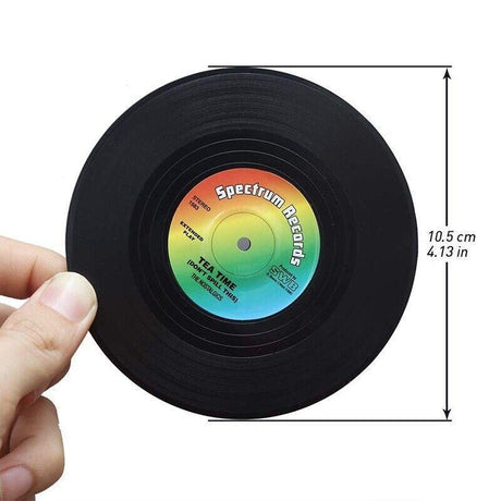 6PCS Retro Vinyl Record Drink Coasters Set - Round ABS Cup Mats for Home or Bar