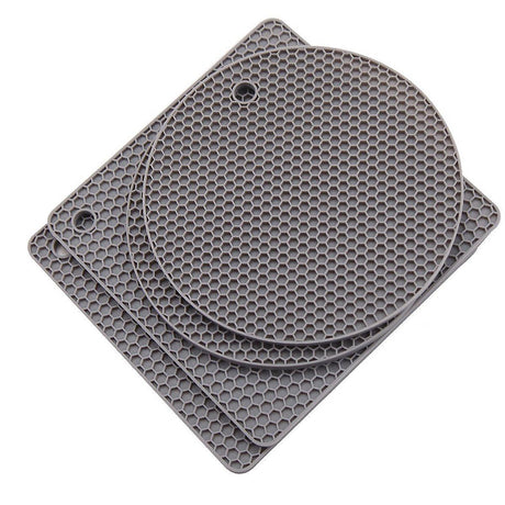 4pcs Silicone Honeycomb Heat Resistant Mats Table Cup Pot Coasters Home Kitchen - Grey