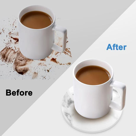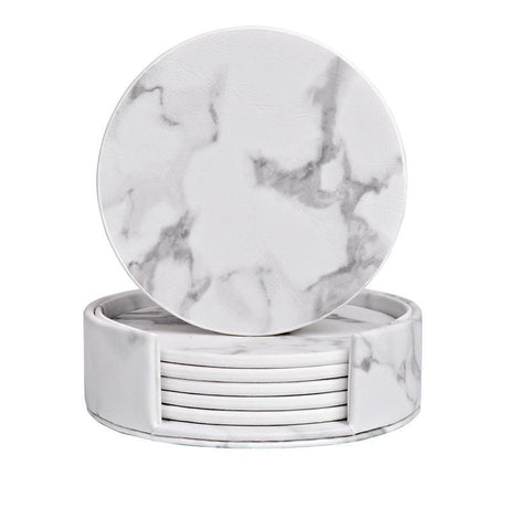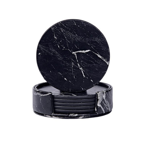 6x Coasters with Holder Marble Texture Round Cup Mat Pad Set For Drinks - Marble Black