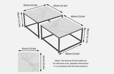Interior Ave - Ciest Square Nested Coffee Table Set - White Marble Stone