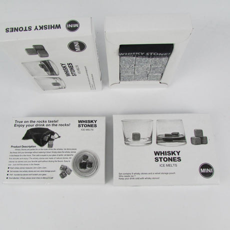 Natural Marble Whiskey Chilling Stones - Set of 9 Reusable Ice Cubes for Perfectly Chilled Drinks