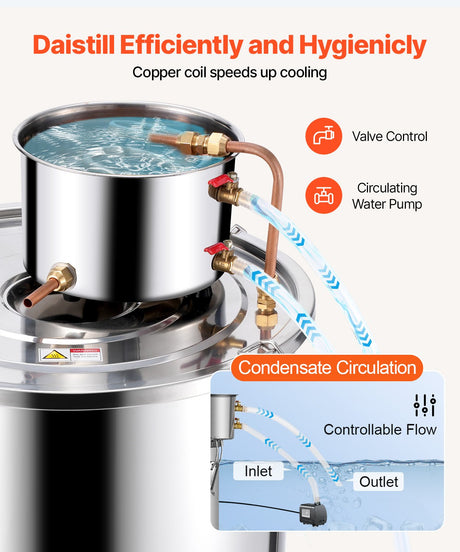 Vevor 30L 8Gal Alcohol Distiller Water Spirit Boiler Home Brew Copper Alcohol Still