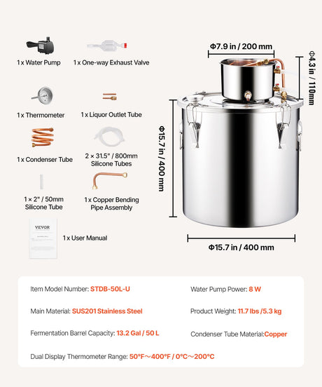 VEVOR Moonshine Still 13 Gal Water Alcohol Distiller Brewing Kit Stainless Steel