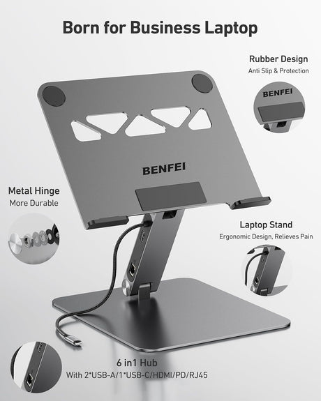 BENFEI 398GY TYPE-C 6-in-1 HDMI+USB-C(10G)+RJ45+2xUSB-A(10G)+PD