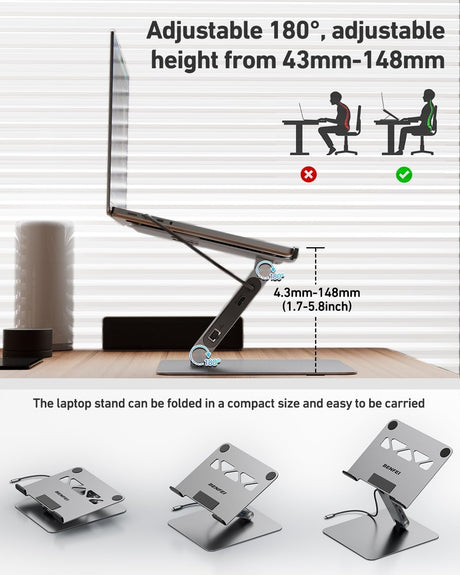 Black Portable Aluminum Laptop Support - Lifting and Raising