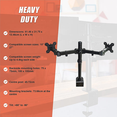 Dual LCD Monitor Desk Mount Stand Adjustable Fits 2 Screens Up To 27